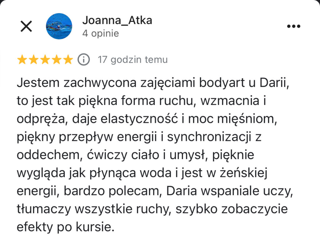 Moja misja to holistyczna transformacja przez ruch i oddech. Sam fitness kiedyś mnie niszczył – BODYART nauczył cierpliwości, odpuszczania i syntezy technik dla harmonii duszy, umysłu i ciała. Robię to, bo sama odkryłam aktywność jako drogę do spełnienia, szczęścia i wewnętrznego spokoju – przekazuję Ci tę mądrość krok po kroku.